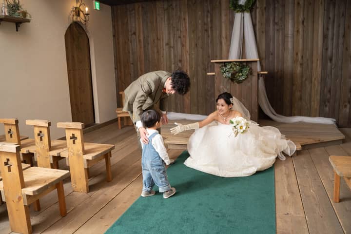 チャペルでの撮影や外に出てのロケーション撮影、ご家族を呼んで晴れ姿を披露しながらお食事会をつけるプランも人気です。